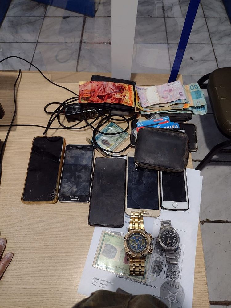 Com os suspeitos, foram apreendidas três carteiras com diversos cartões de crédito, dois relógios e cerca de R$ 700 em dinheiro.