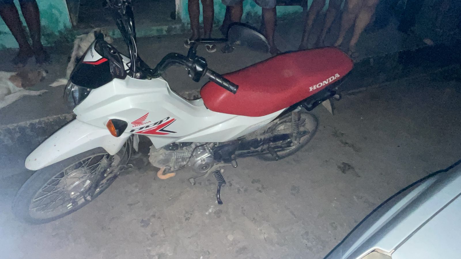 Os policiais militares apreenderam a moto Honda Pop branca, que seria usada para fuga, a pistola de calibre 45, um carregador e sete munições, em posse dos suspeitos do roubo.