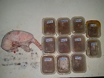 Em outra etapa da ação, um homem foi preso suspeito de caçar animais de pequeno porte, como tatu, quati e paca. Em uma residência foram encontrados carcaças de tamanduá mirim, iguana e cutia. Também foram apreendidas nove armadilhas do tipo tatuzeira.
