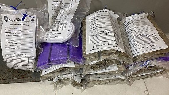 Ainda durante a abordagem, um outro suspeito foi avistado pelos policiais dentro da casa, no momento em que manuseava mais entorpecentes. Ele também foi detido e disse que "o crime irá cobrar isso daí, véi", ao dialogar com os agentes. Além dos 43 kg de maconha em tabletes, uma balança de precisão foi recolhida no imóvel.