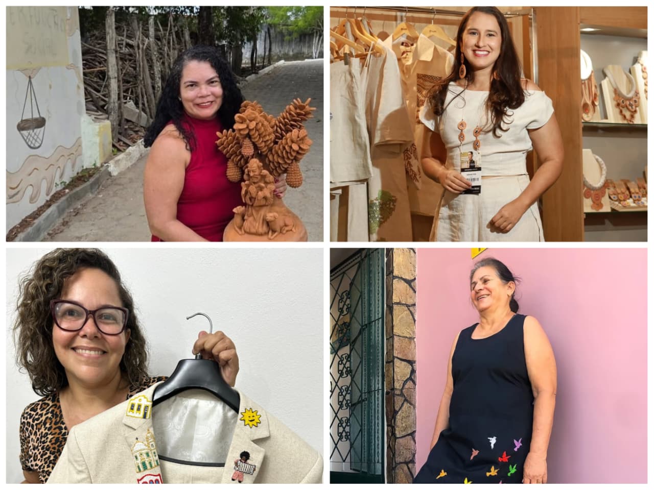 Nas minhas andanças pelas cidades alagoanas, conheci talentos como Sil da Capela, ex-cortadora de cana-de-açúcar, que fez do barro seu caminho e sua voz. Na Artnor, essas histórias se encontram também nos bordados em ponto cruz de Ariane, da Beliê (Barra de São Miguel); nas linhas coloridas de Mimos de Dona Pero (Capela); nos bordados Boa Noite, da Art Ilha; e nos Pontos e Contos, de Penedo.
