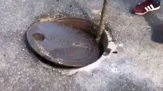 A tampa solta de um bueiro na Rua Engenheiro Demócrito Sarmento teria provocado ao menos três acidentes com pedestres na última semana, no bairro de Pajuçara, em Maceió. O apresentador do programa Balanço Geral Alagoas, da TV Pajuçara/Record TV, Tiago Hélcias, o "Papito", flagrou o momento em que um trabalhador da feirinha do Artesanato colocava um galho de árvore entre o buraco e tampa da boca de lobo, na última sexta, 06, para chamar a atenção da população e evitar novas quedas.