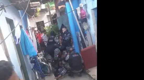Após ser derrubada no chão, a vítima teve o rosto pressionado pelo joelho de um dos policiais. Além da mãe dele, que tentou defendê-lo, a sogra, uma idosa de aproximadamente 80 anos, também teria sido agredida pelos policiais. "Ela foi empurrada pelos policiais, meu esposo que tinha saído e voltado no momento da confusão, também foi empurrado. Eles não estavam deixando ninguém se aproximar, e continuaram batendo no meu filho", explicou a mãe.
