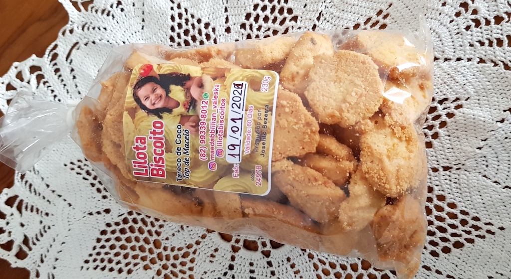 Na primeira mordida do tareco de coco, aquele “croc” de felicidade. Mas, fiquei encantada mesmo foi com o sabor delicado e o gostinho da fruta de cada biscoitinho do Lilota Biscoito (@lilotabiscoitos). O produto é uma receita de Joselito Bezerra dos Santos, que, com o auxílio luxuoso da sua amada, Aline Vanessa, faz e vende de porta em porta. Os ingredientes são: farinha de trigo, margarina, açúcar, ovos, coco fresco, fermento de bolo, sal e muito amor.