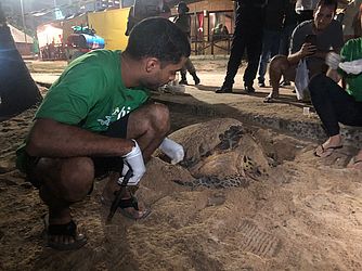 Para as tartarugas, valem ainda as orientações de não manter o animal na água e não tentar alimentá-lo. Se a avistagem ocorrer no período noturno, a tartaruga for grande e estiver andando pela praia, provavelmente não esteja encalhada, mas pode estar tentando encontrar um local para desovar, o que não pode ser interferido.