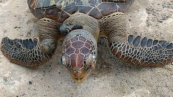 "Por conta do avançado estágio de decomposição, ela está bastante inchada e com as placas se desprendendo do corpo", explicou a veterinária do Biota, Luciana Medeiros.