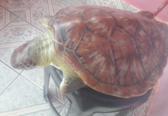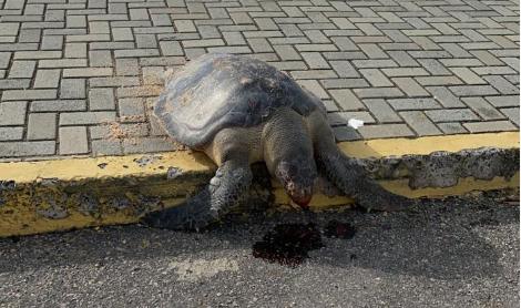 O Biota informou que era uma tartaruga adulta da espécie oliva e que acionou a Prefeitura para recolher o animal.