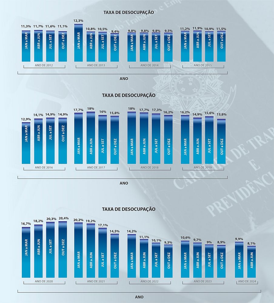 De acordo com o levantamento, na passagem do primeiro para o segundo trimestre de 2024, a taxa de desemprego no estado recuou de 9,9% para 8,1% - uma retração de 1,8 ponto percentual.