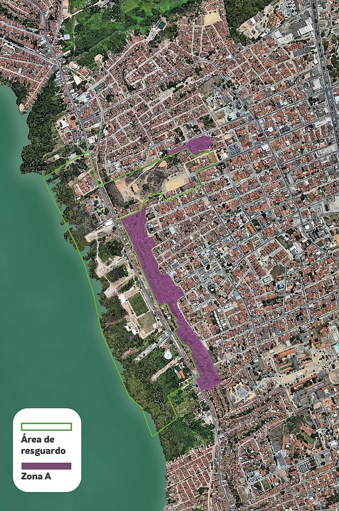 A zona A do mapa (imagem abaixo) será a primeira área de risco a ser desocupada, conforme previsto no acordo entre as Defensorias Públicas do Estado e da União, os Ministérios Públicos Federal e do Estado e a Braskem. Apenas para esses moradores das encostas, o acordo prevê uma alternativa de compensação pré-definida. O dono que mora no imóvel pode optar por receber o pagamento da compensação no valor de R$ 81.500. Se a casa estiver alugada, o dono do imóvel vai receber uma compensação no valor de R$ 61.500, e o inquilino receberá R$ 20.000.