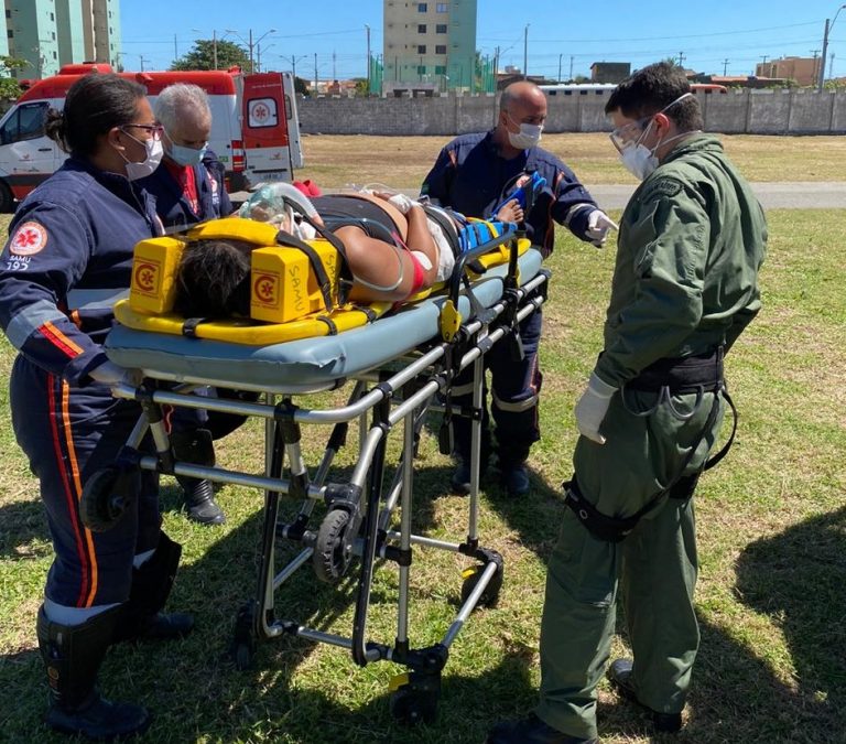 “Quando chegamos ao local do desabamento, a equipe da USB estava realizando os primeiros atendimentos. A vítima apresentava suspeita de fratura na perna direita e no braço esquerdo. A paciente também estava com um hematoma na cabeça e se queixava de dores abdominais”, relatou a enfermeira do Samu Aeromédico.