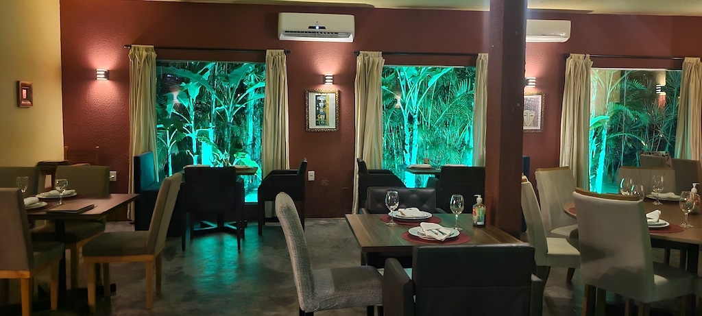 Prato principal (a la carte – 1 opção): lombo de bacalhau confitado, ( azeite de oliva, aspargos frescos, tomate cereja e batatinhas ao murro), frutos do mar a lagareiro ( camarões, polvo e lula com legumes ao forno, finalizado com azeite aromatizado), pernil ao forno (com molho cítrico e couscous marroquino de amêndoas e uvas passas), filé ao cogumelos frescos(filé mignon na chapa, regado ao molho de cogumelos frescos, com rosti de mandioca, cenoura e alho poró), prato kids (filé mignon na chapa com espaguete na manteiga e parmesão)
