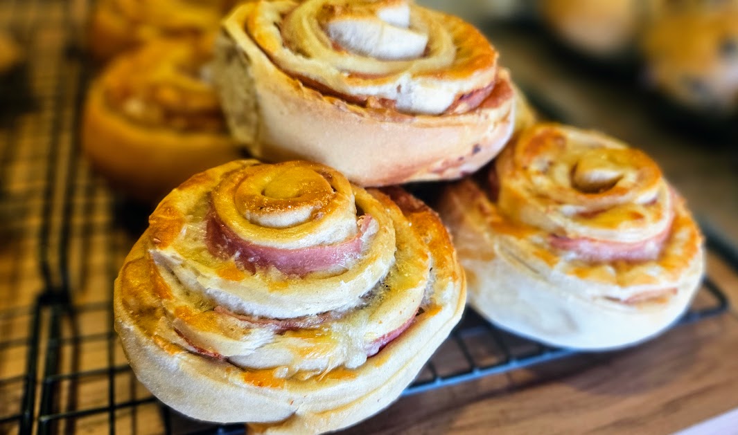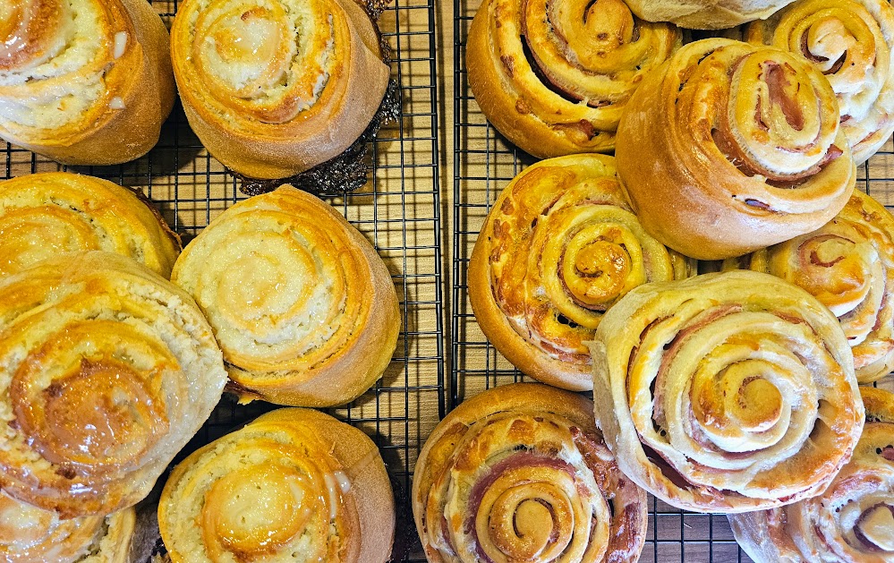 Segundo o padeiro Lino, tanto a fatia húngara quanto o joelho de queijo e presunto são feitos a partir da massa de brioche. O que difere são os recheios, um salgado e outro doce. E ambos são maravilhosos.