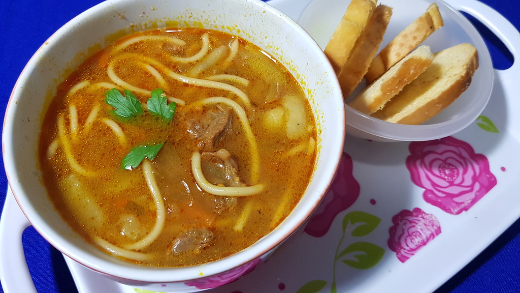 Sopa tradicional de feijão com torradas por R$ 10 no Big Pastellito