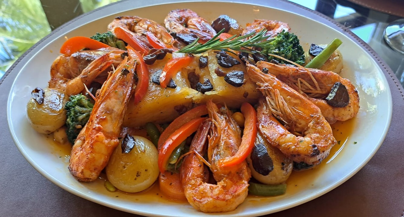 Outra novidade é o bacalhau casadinho com camarão no alho negro. “Esse bacalhau está dos deuses!”, comenta a chef Thaísa de Mello. O novo prato traz lombo de bacalhau, camarões e legumes salteados em azeite de pimentões vermelhos, finalizados com alho negro. Realmente, essa combinação de peixe e camarão ficou nota 10.