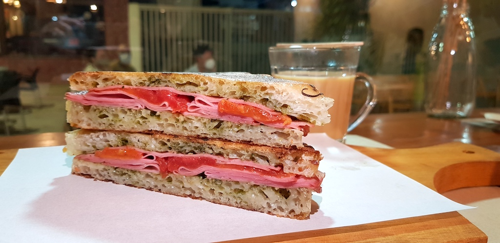 E olhe que a gente pode ficar dividido, sem saber qual escolher como, por exemplo, entre a leveza dos tomatinhos na manteiga com ricota, molho pesto na fatia de pão italiano tostado no azeite, ou na força da Focaccia com mortadela, tomate confit e pesto (Focaccinno Bologna). Difícil verídico, né? O jeito é ir mais de uma vez na Back Bakery.
