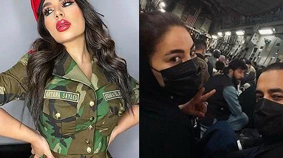 A cantora Aryana Sayeed, 36, jurada da versão afegã do The Voice, compartilhou nas redes sociais a sua fuga do Afeganistão em um avião de carga dos Estados Unidos. As mulheres temem a perda de direitos com a chegada do Taleban ao poder no país. A artista publicou uma foto, ao lado do marido, dentro do avião de carga americano fazendo um sinal de vitória. Na imagem, é possível ver a bandeira americana ao fundo e o espaço lotado por pessoas sentadas no chão.