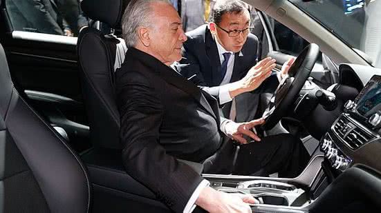 Em visita aos stands do salão, Temer destacou a tecnologia avançada presente nos automóveis e defendeu as parcerias entre o governo e a iniciativa privada para o desenvolvimento econômico do país.