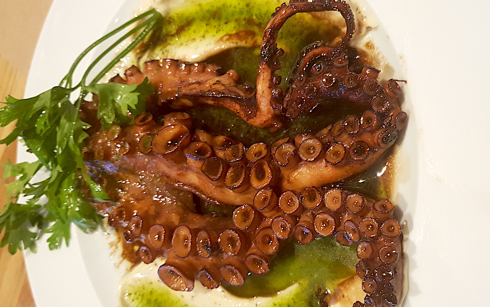 O polvo também tem assento na versão clássica de arroz de polvo da chef Vera ou na contemporaneidade do chef Jonatas, com o molusco na emulsão de mostarda com pontinhos de páprica picante, mel e azeite.