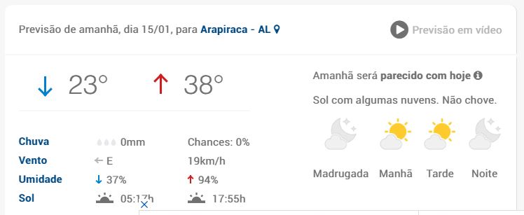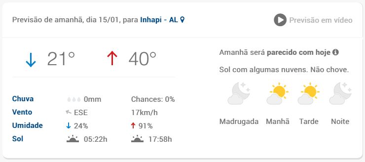 Cidades localizadas no Sertão alagoano como Inhapi, distante 271 quilômetros de Maceió, podem ter temperaturas acima dos 40º C nesta terça e quarta-feira (15), segundo o site Climatempo. No Agreste, Arapiraca tem previsão de 38º C nos horários de pico. Já nos litorais Sul e Norte as temperaturas devem ficar em 32ºC.