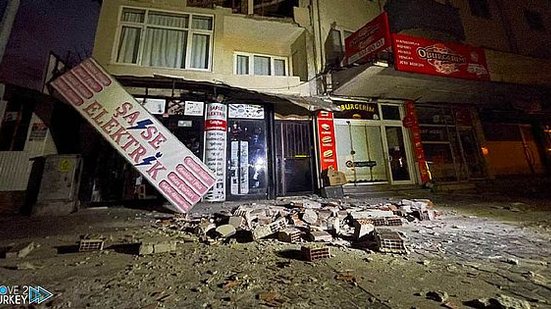 As escolas foram fechadas por precaução. O revestimento exterior e partes do telhado de um tribunal desabaram. Uma mesquita na aldeia de Saridere, perto do epicentro do terremoto, também sofreu danos e foi fechada, informou a agência estatal Anadolu.