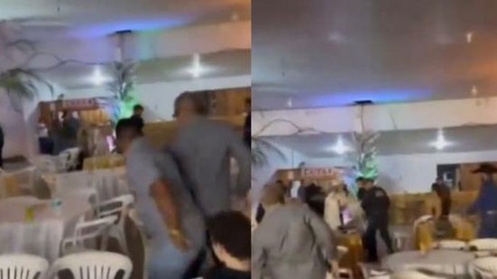 O vídeo abaixo mostra o momento dos disparos. As pessoas presentes aparecem gritando e correndo pelo salão de festas. Assista: