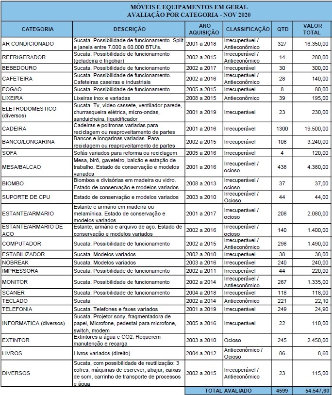 O Tribunal de Justiça de Alagoas (TJAL) promoverá, nesta terça-feira (5), mais um leilão de bens móveis em geral e veículos em desuso ou inservíveis para o Poder Judiciário. 1ª praça será realizada às 10h e a 2ª praça às 11h, ambas com lance igual ou superior ao valor da avaliação. O valor da avaliação é de R$ 41.750,00 para os veículos e R$ 54.547,60 para os móveis em geral.
