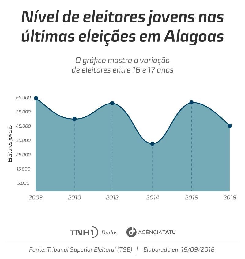 De acordo com dados do Tribunal Superior Eleitoral (TSE) coletados pelo Portal TNH1 e Agência Tatu, em Alagoas, o número de eleitores com essas idades apresenta um aumento em anos de eleições municipais. Isto é, quando estão em disputa cargos para vereadores e prefeitos, o número de eleitores jovens tende a crescer.