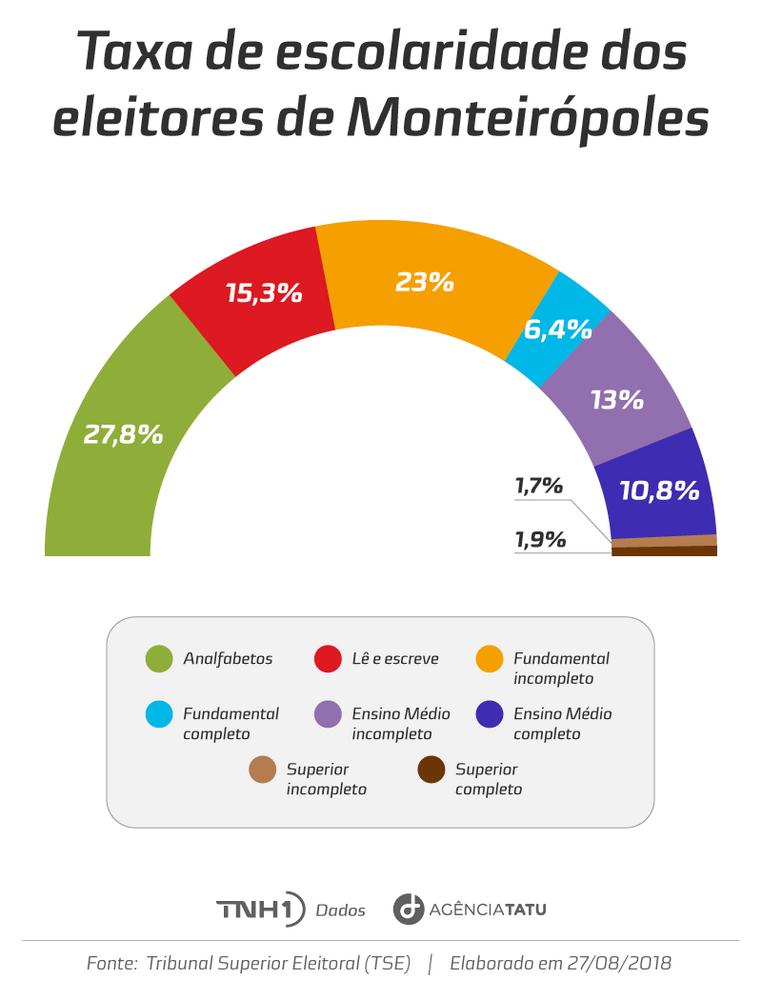 O município de Monteirópolis, situado no Sertão alagoano, possui a maior taxa de eleitores analfabetos do estado. No total, 27,8% das 5.740 pessoas aptas a votar nas eleições majoritárias de 2018 se encontram dentro deste perfil de escolaridade, segundo dados do Tribunal Superior Eleitoral (TSE) analisados pelo Portal TNH1 e Agência Tatu.