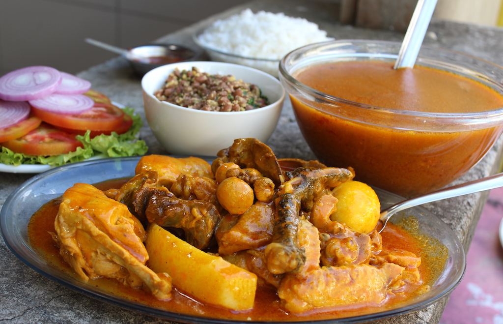 Nas panelas da Fia não entra pimentão e nem vinagre, já hortelã, favava, cominho (pouco), alho, tomate e cebola têm assento cativos na cozinha da família da Fia. Todos ingredientes são batidos no liquidificador e viram o tempero base para cozinhar as galinhas na panela de pressão. Quanto estão finalizadas, é retirado o caldo, peneirado e misturado com farinha de mandioca para render o pirão, a glória da cozinha nordestina.
