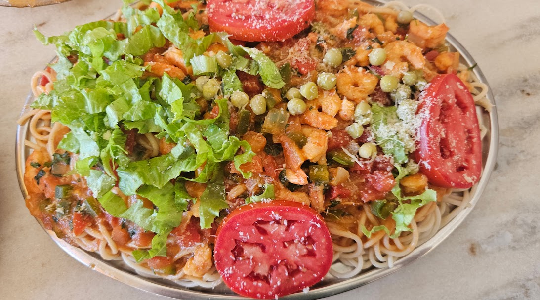 Macarronada de camarão para compartilhar
