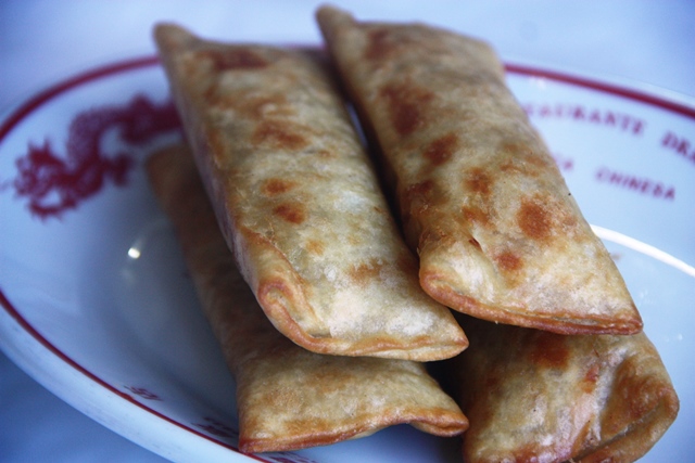 A massa do pastel chinês é feita com farinha de arroz e batata doce, tipo massa de coxinha, mas com toque oriental. O recheio do pastel é carne de porco, camarão, ervilha, ovo, cebolinha e amendoim torrado, fora alguns temperos secretos.