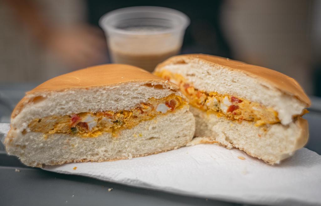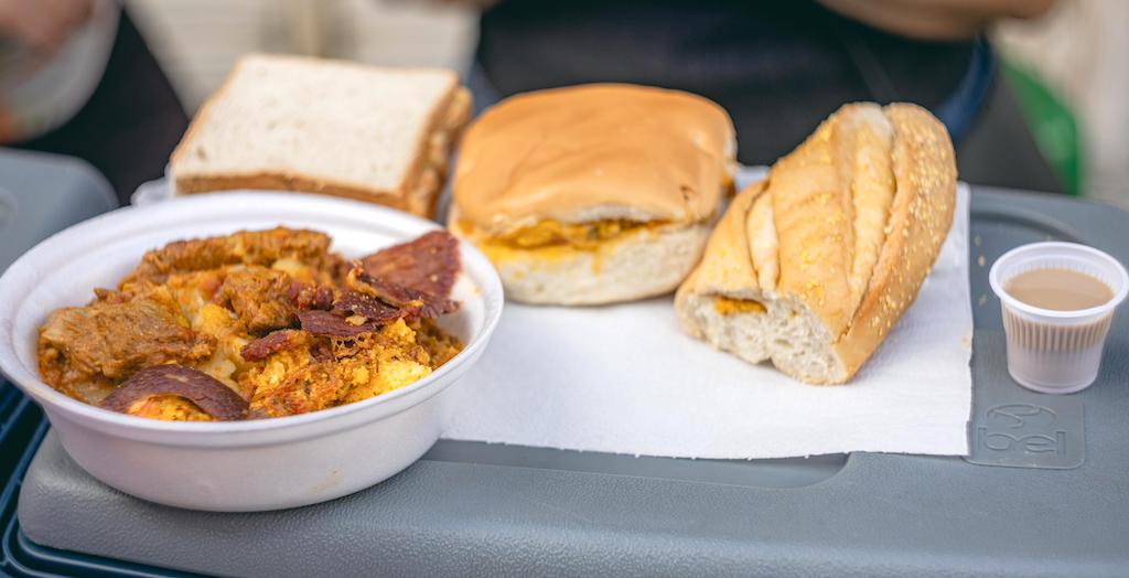 Pão com ovo, sanduíche de frango e macaxeira com charque da Rose