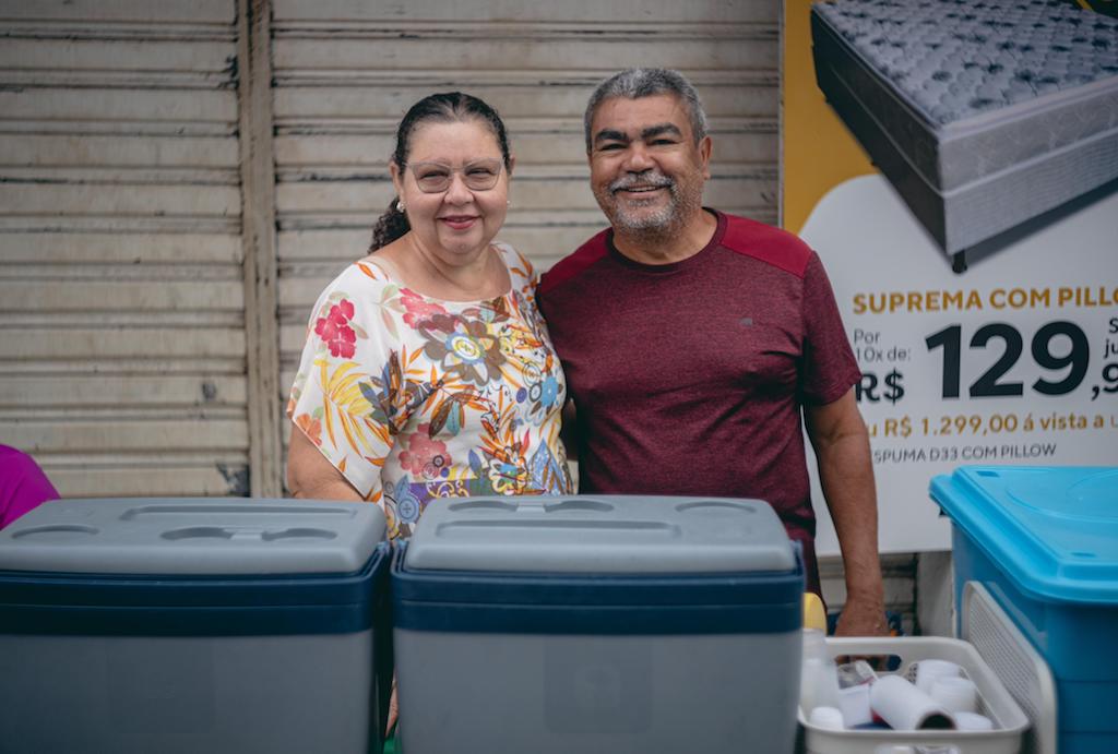 Rose e com o esposo, Williams, casal vende de lanches e distribui simpatia na esquina do Beco São José