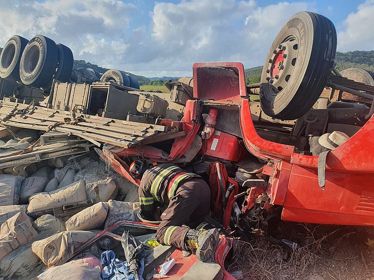 Um caminhão carregado de cimento tombou e deixou duas pessoas feridas na manhã desta quinta-feira, 14, na rodovia AL-105, na zona rural do Benedito Bentes, em Maceió.