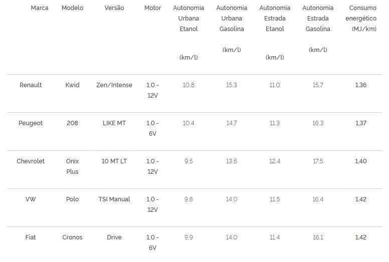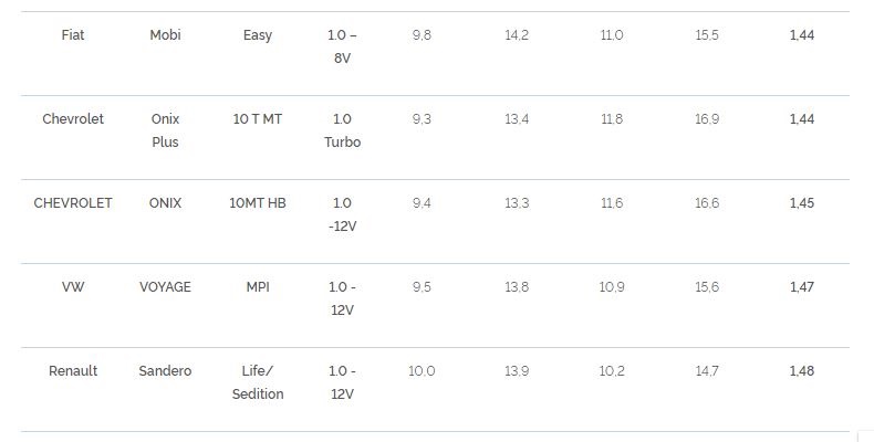 Às vésperas do anúncio do retorno da tributação dos combustíveis, nada melhor do que conferir quais os carros mais econômicos à venda no Brasil. Confira abaixo o ranking segundo a mais nova tabela do Inmetro: