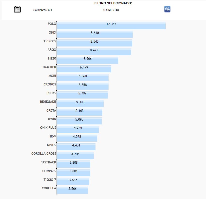 Contabilizando todos os estados, o ranking dos mais vendidos em setembro ficou assim: