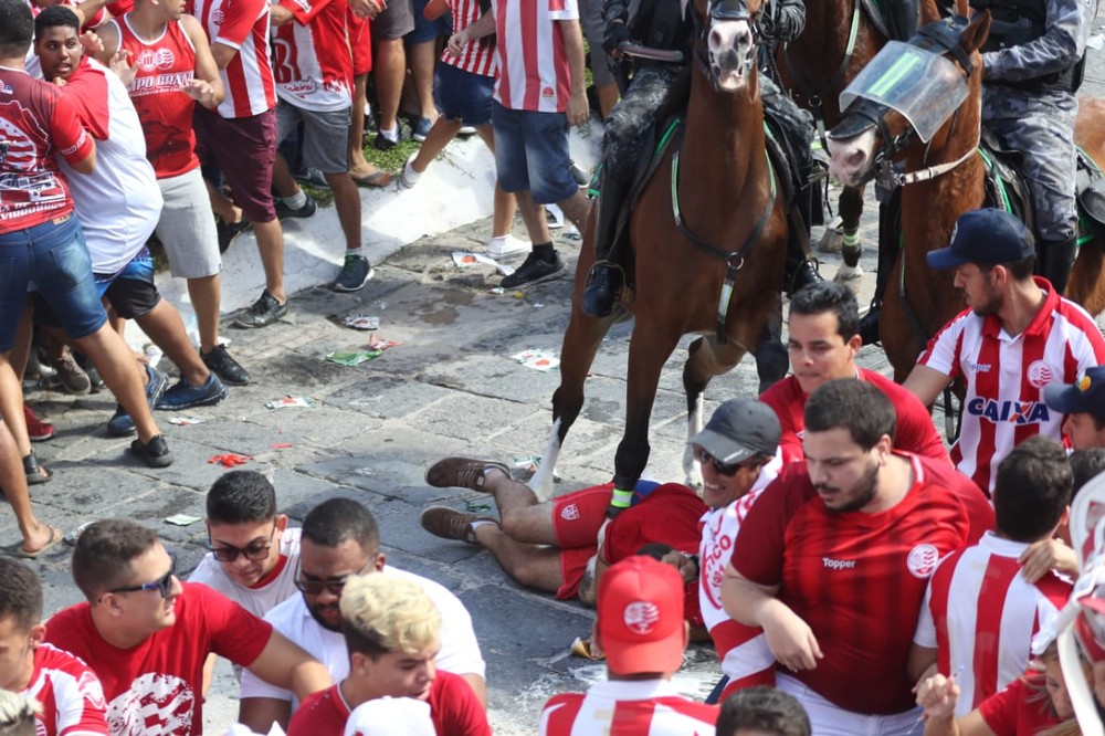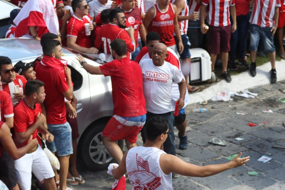 A PM precisou intervir após uma confusão começar na Avenida Rosa e Silva, próximo a um dos portões do estádio. Durante o princípio de tumulto, a cavalaria foi utilizada e um torcedor do Náutico foi derrubado por um dos animais.