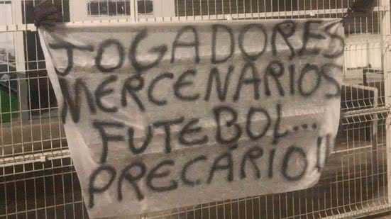 Em uma das frases de protesto estava escrito “futebol não é poker”, em referência ao presidente do clube, Rogério Siqueira, que é jogador profissional do esporte. Já em outra faixa estendida, a torcida do Fantasma cobrou também os jogadores do clube: “Jogadores mercenários, futebol… precário”. Confira: