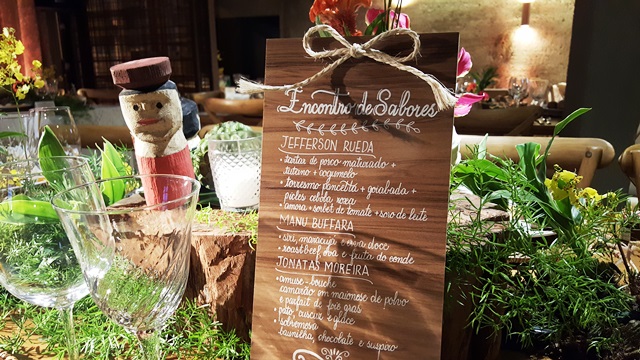 Nas mesas arte do Aberaldo da Ilha do Ferro e menu degustação dos chefs Jonatas, Jerffeson e Manu