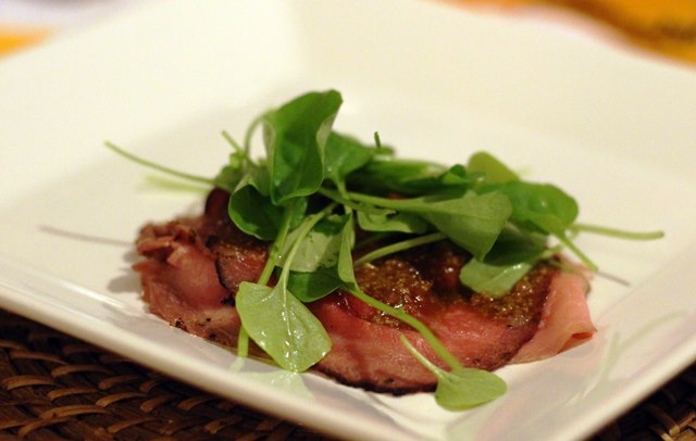 O torresmo com ketchup de goiabada, criação do chef Jefferson Rueda (conhecido como Jeffinho), do restaurante A Casa do Porco (São Paulo), em fração de minutos foi saboreado pelos convidados do Encontro de Sabores, no Akuaba. Quem já conhecia a iguaria, matou saudade. Quem provou pela primeira vez, entendeu o porquê do petisco suíno ser o mais famoso do Brasil. Afinal, o torresmo é uma “lapa” de carne de porco com uma deliciosa gordurinha que derrete no céu da boca, e o doce da goiaba dá um arremate surpreendente e feliz.