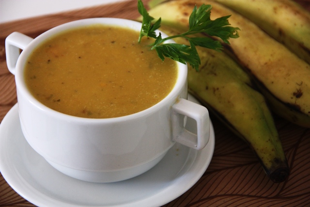 A banana-terra virar sopa é uma das novidades do Manga Verde. As bananas da terra são cozidas, passadas no triturador, leva sal e um pouco de canela. Resultado: um caldo agridoce