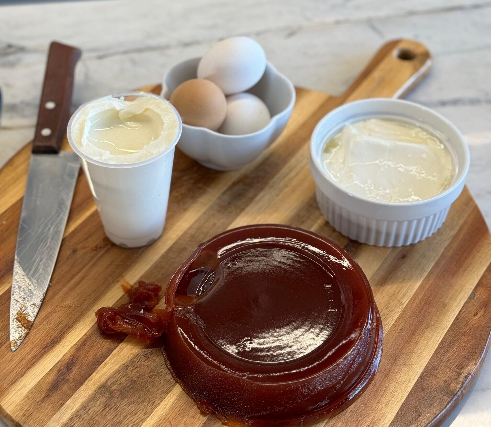 Em uma travessa, corte a goiabada em fatias. Em outra tigela, misture os ovos, o creme de leite e o requeijão cremoso. Despeje esse creme sobre a goiabada e leve para o forno já aquecido a 200º graus por aproximadamente 20 minutos. Protinho!