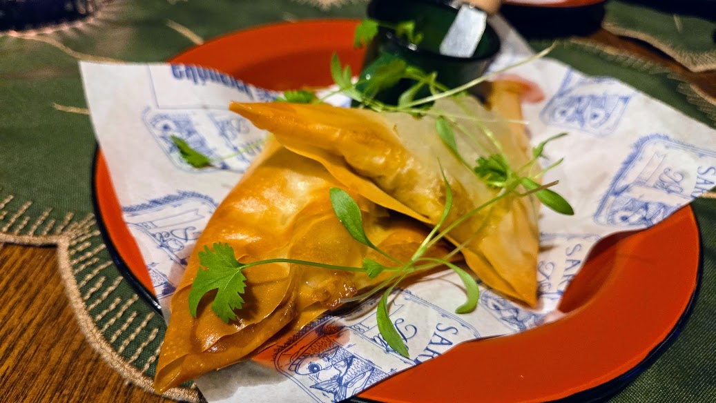 Novidades - Samosas de frango e batata ao curry é uma dupla de pastéis de massa filo recheados com frango e batata ao curry ao estilo indiano.