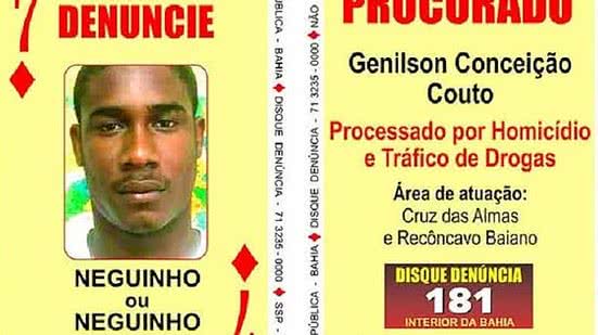 Conhecido como '7 de Ouro' do baralho do crime da Bahia, Genilson era processado por homicídio e tráfico de drogas.