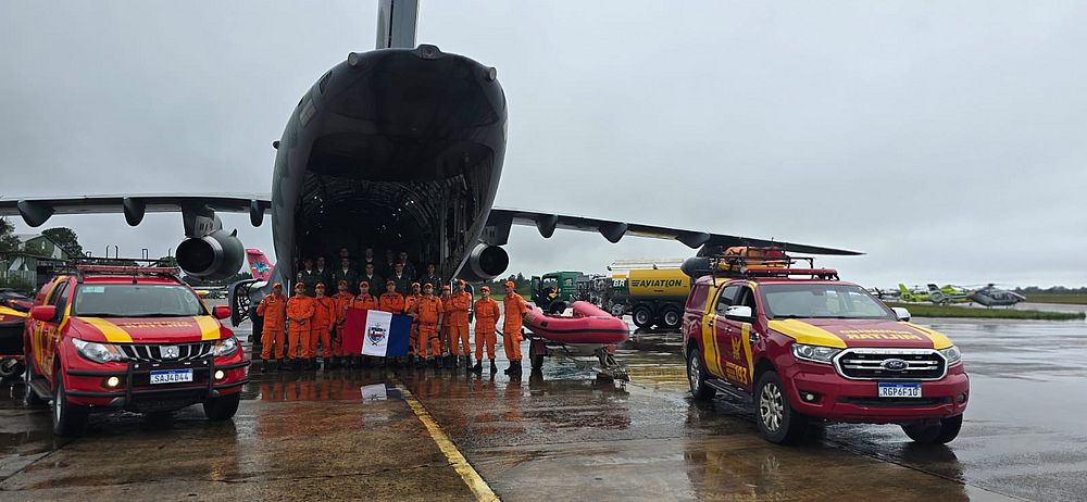 - No mesmo voo, foram levadas duas caminhonetes, uma moto aquática de salvamento (jet-ski) e um bote inflável de salvamento