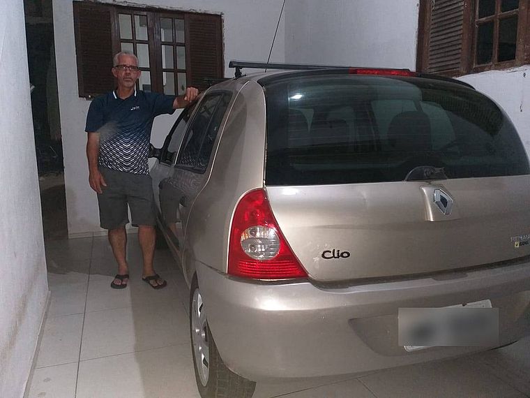 O condutor Jeferson Ferreira ao lado do carro na garagem (Foto: Arquivo Pessoal)