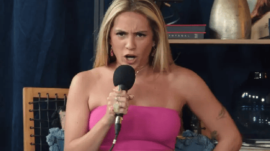 A veterana, então, não perdeu tempo. "Ah, gente. As músicas que ela faz". Luísa, então, cantou um trecho da canção, que tomou conta das redes sociais.