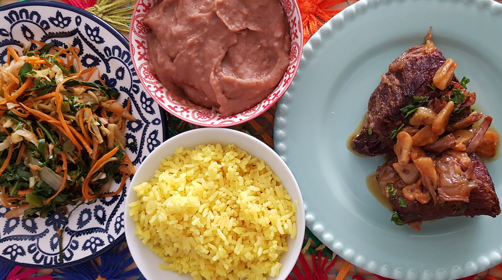 Na minha mesa nada combina, apenas a vontade de comer: cupim, arroz com açafrão, tutu a mineira e legumes da Sil