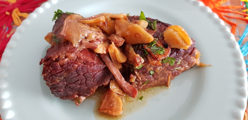 Cupim de panela com lascas de alho no azeite