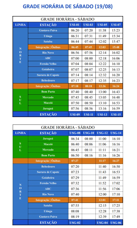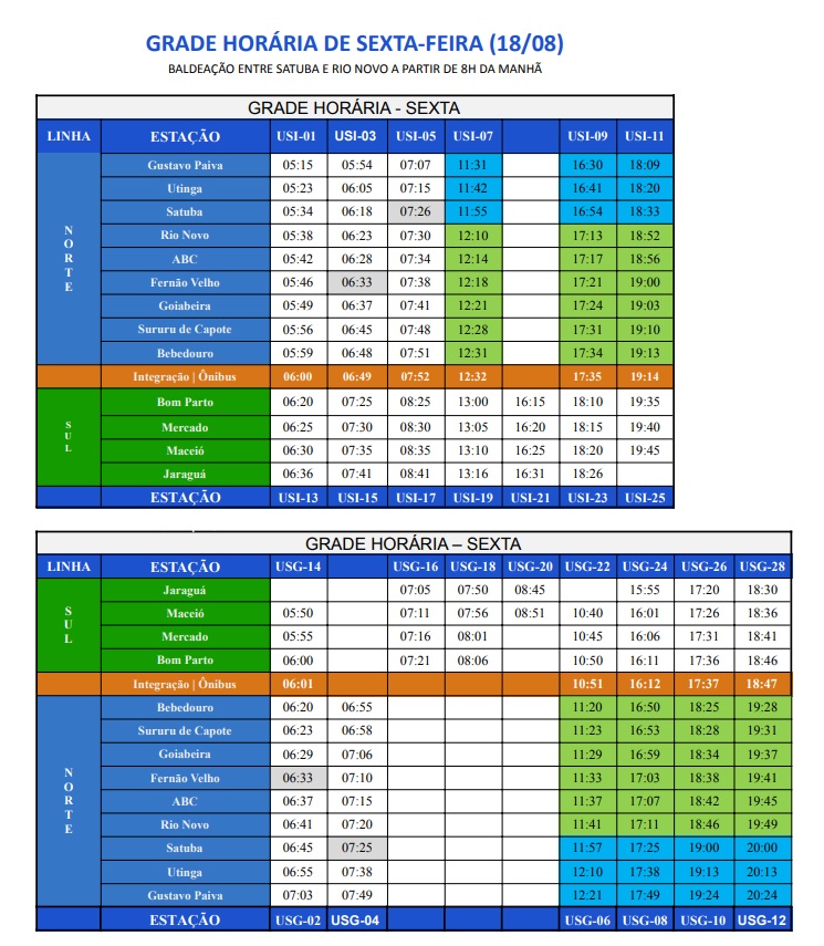 A empresa informou ainda que, para contornar a situação, serão disponibilizados ônibus para fazer a baldeação dos passageiros entre as estações de Satuba e Rio Novo, a partir das 8h da manhã desta sexta-feira.